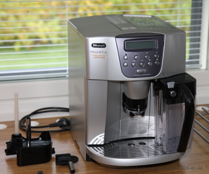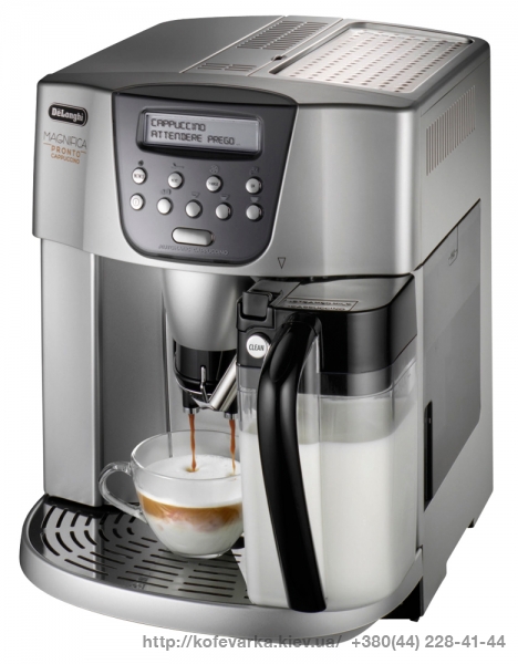 DeLonghi Magnifica Pronto Cappuccino - пенный воздушный капучино без всяких усилий с Вашей стороны! Спектр кофейных напитков, встроенная кофемолка, графин-молочник, удобное управление и обслуживание сделают этот кофейный аппарат отличным помощником на домашней кухне, в маленьком офисе или в приёмной начальника.