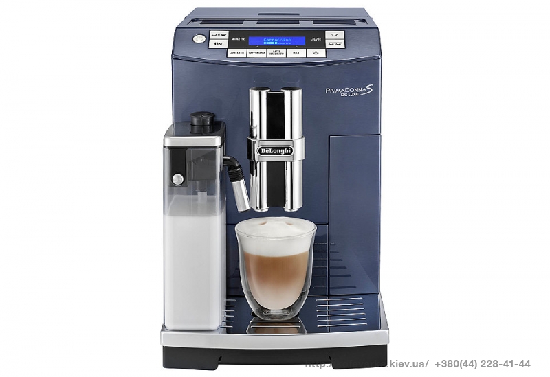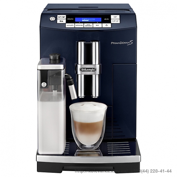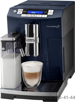 DeLonghi PrimaDonna S DeLuxe ЕСАМ 26.455 Blueberry (ДеЛонги ПримаДонна С ДеЛюкс ЕКАМ 26.455 Блуберри) — автоматическая кофеварка, которая умеет готовить эспрессо, капучино, латте одним нажатием кнопки. Эта модель в первую очередь примечательна корпусом богатого синего цвета.