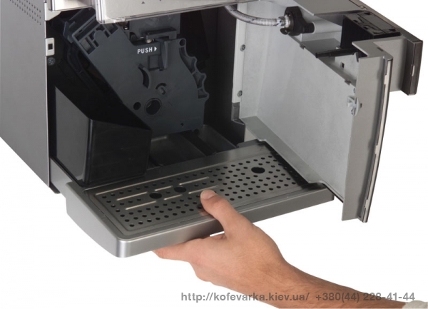 На верхней панели кофемашины находится поставка для чашек, с удобным углублением, предохраняющим чашки от падения. Gaggia Titanium поддерживает функцию активного подогрева этой подставки, что позволяет, во-первых, быстрее просушить демитассе после мытья, а во-вторых, прогреть их перед использованием до нужной температуры.