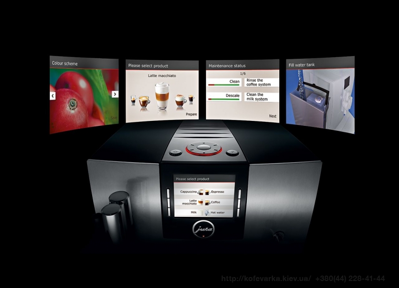 Кофемашина максимально удобна и интуитивна в управлении. Поворотный регулятор Rotary Switch, который располагается на верхней панели кофемашины, позволяет легко "ходить" по меню, выбирая желаемые кофейные напитки и регулируя любые настройки. На цветной TFT дисплей выводятся яркие и красивые изображения кофейных напитков, а также информационные сообщение машины, обращённые к пользователю. Встроенная кофемолка Aroma+ быстро и тихо размалывает кофейные зёрна, сохраняя их восхитительный аромат и не перегревая помол. Специальный термоблок, в рекордно короткое времея нагревается до нужной для приготовления кофейных напитков температы, кофемашина не заставит Вас долго ждать Вашего кофе!