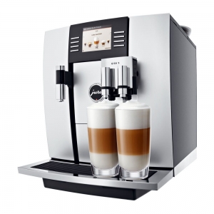 Jura Giga 5 Aluminium EU — высокопроизводительная швейцарская кофемашина-суперавтомат, рассчитанная на установку в больших офисах, ресторанах, барах, кофейнях. Giga 5 — это удвоенные страндарты качества: в металлический корпус помещены две независимые кофемолки, две нагревательные и две гидравлические системы, благодаря чему машина вдвое производительнее, быстрее.