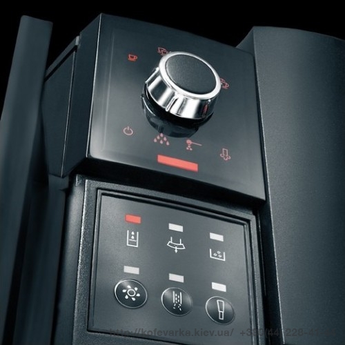 Стильная кофемашина Jura Impressa C50 Black управляется простым поворотом и нажатием джойстика-переключателя Rotary Switch. Светящиеся красным секторы вокруг поворотной ручки и интуитивно понятные значки дисплея помогают определиться с установкой крепости приготовляемого напитка, количеством воды на порцию и другими операциями установки параметров и программирования. Кнопки управления и индикаторы, касающиеся профилактики, локализованы на отдельной панели управления обслуживанием кофемашины, расположенной за дверцей, прямо под основной панелью управления.