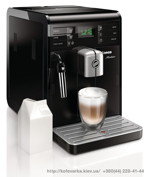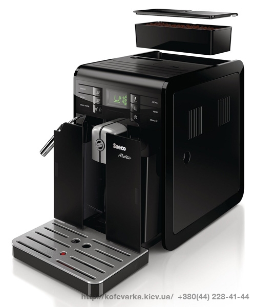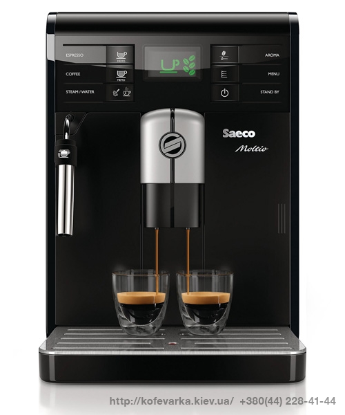 Philips Saeco Moltio имеет стильные внешние данные, блестящий чёрный корпус впишется в любой интерьер, будь то домашняя кухня или небольшой офис.